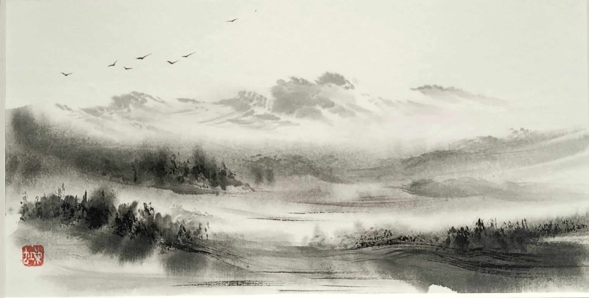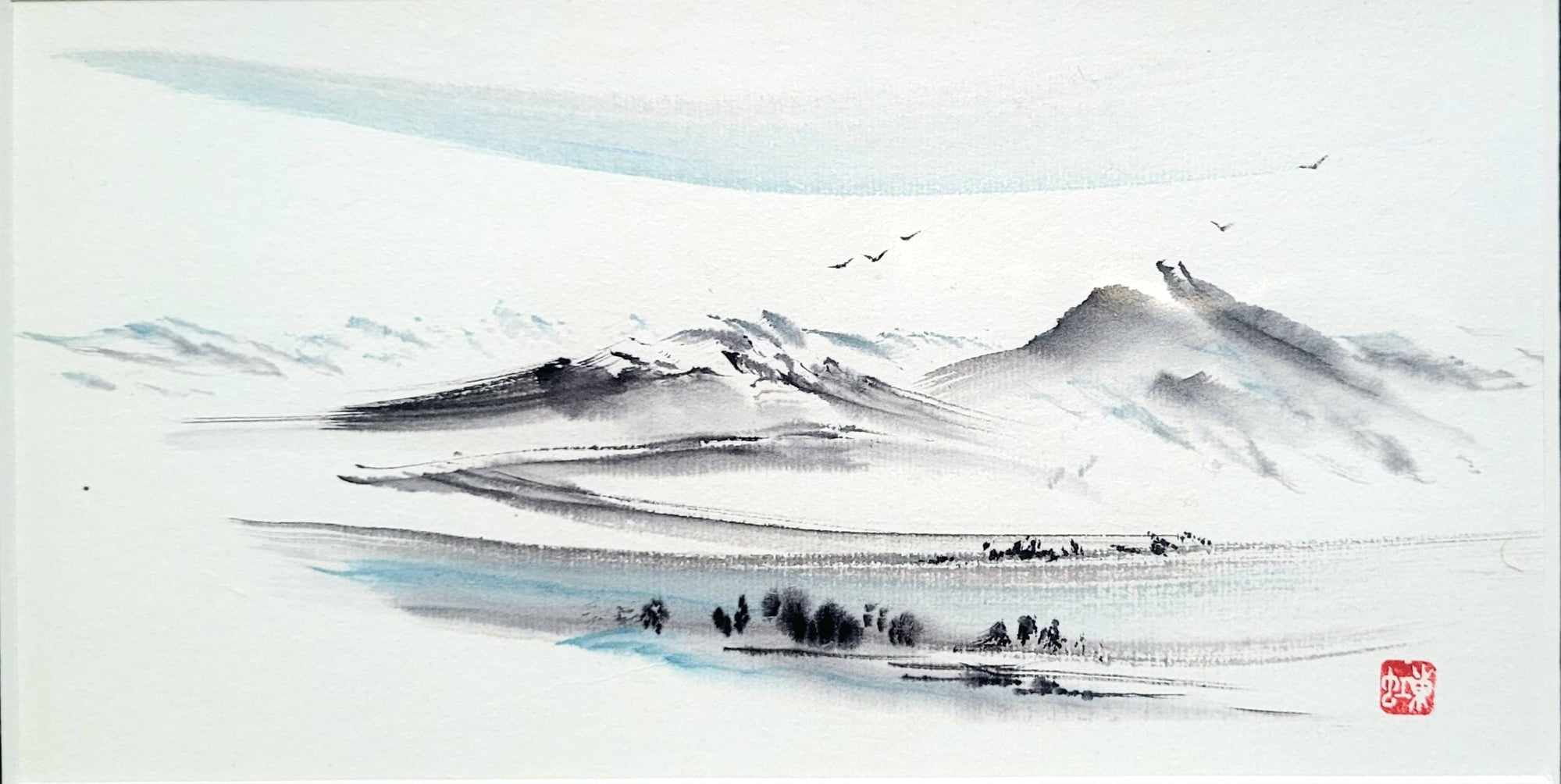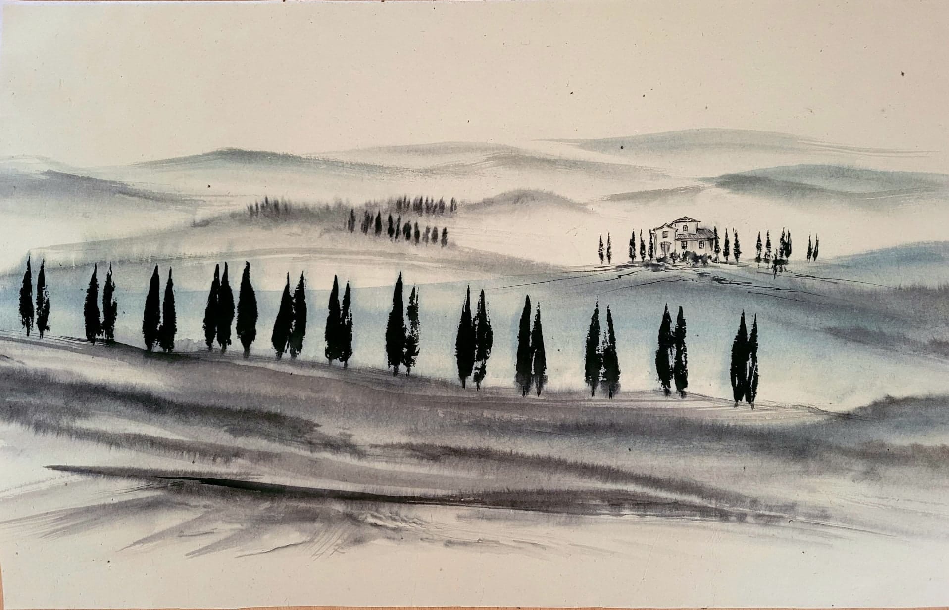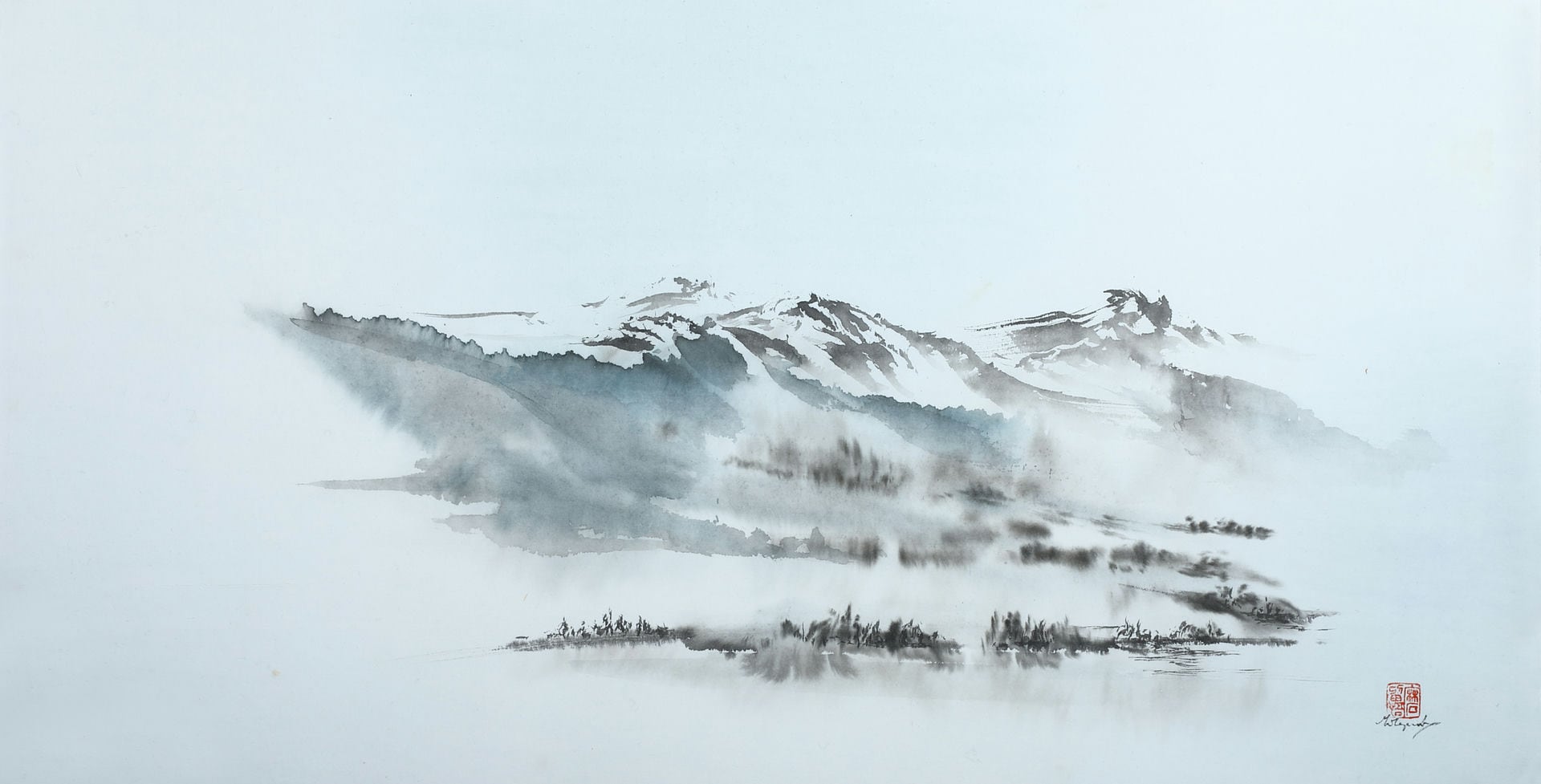 Meine Spezialität sind Landschaften. Die male ich sowohl in traditionellen japanischen Techniken als auch auf moderne und abstrakte Weise.