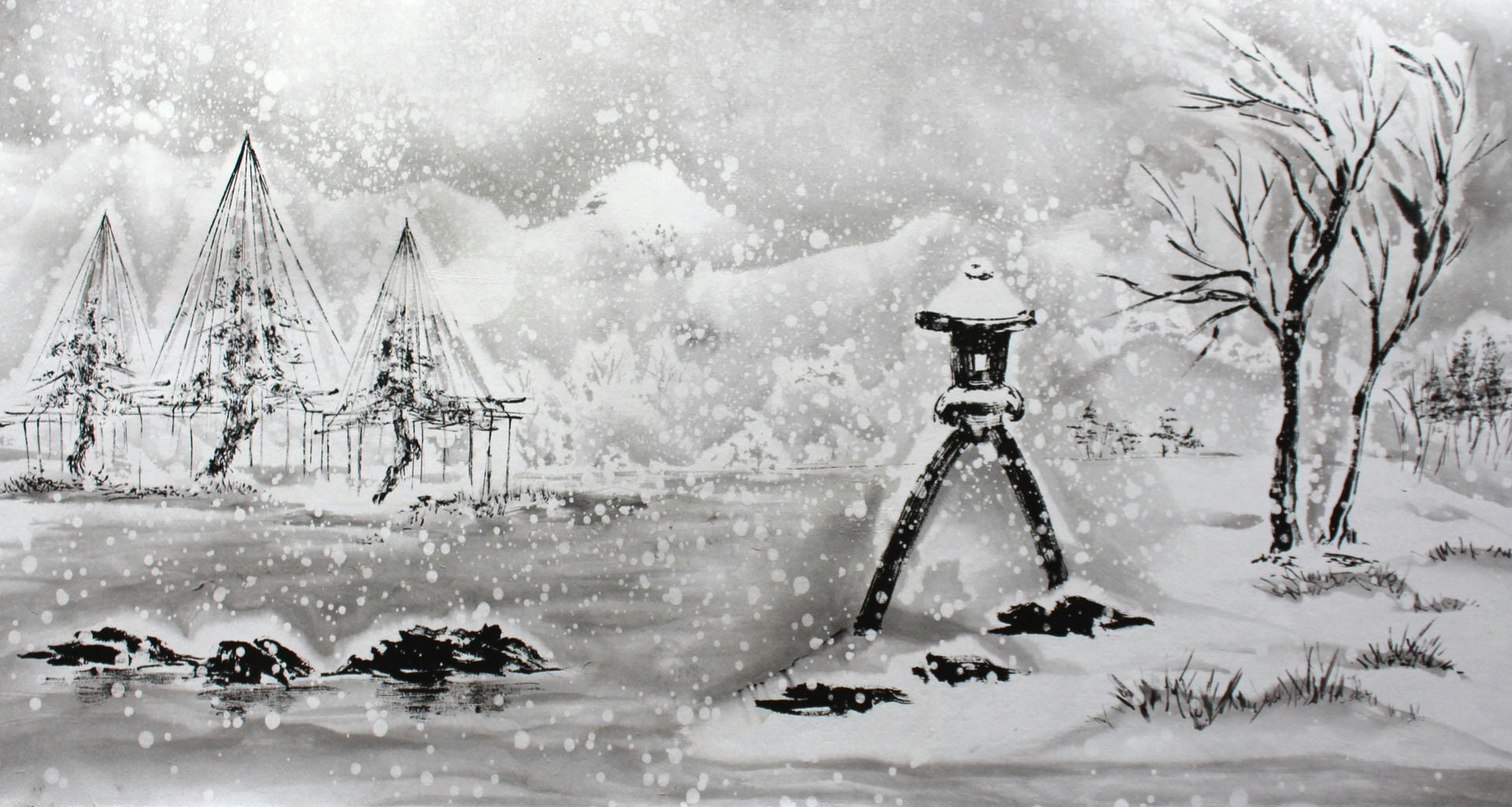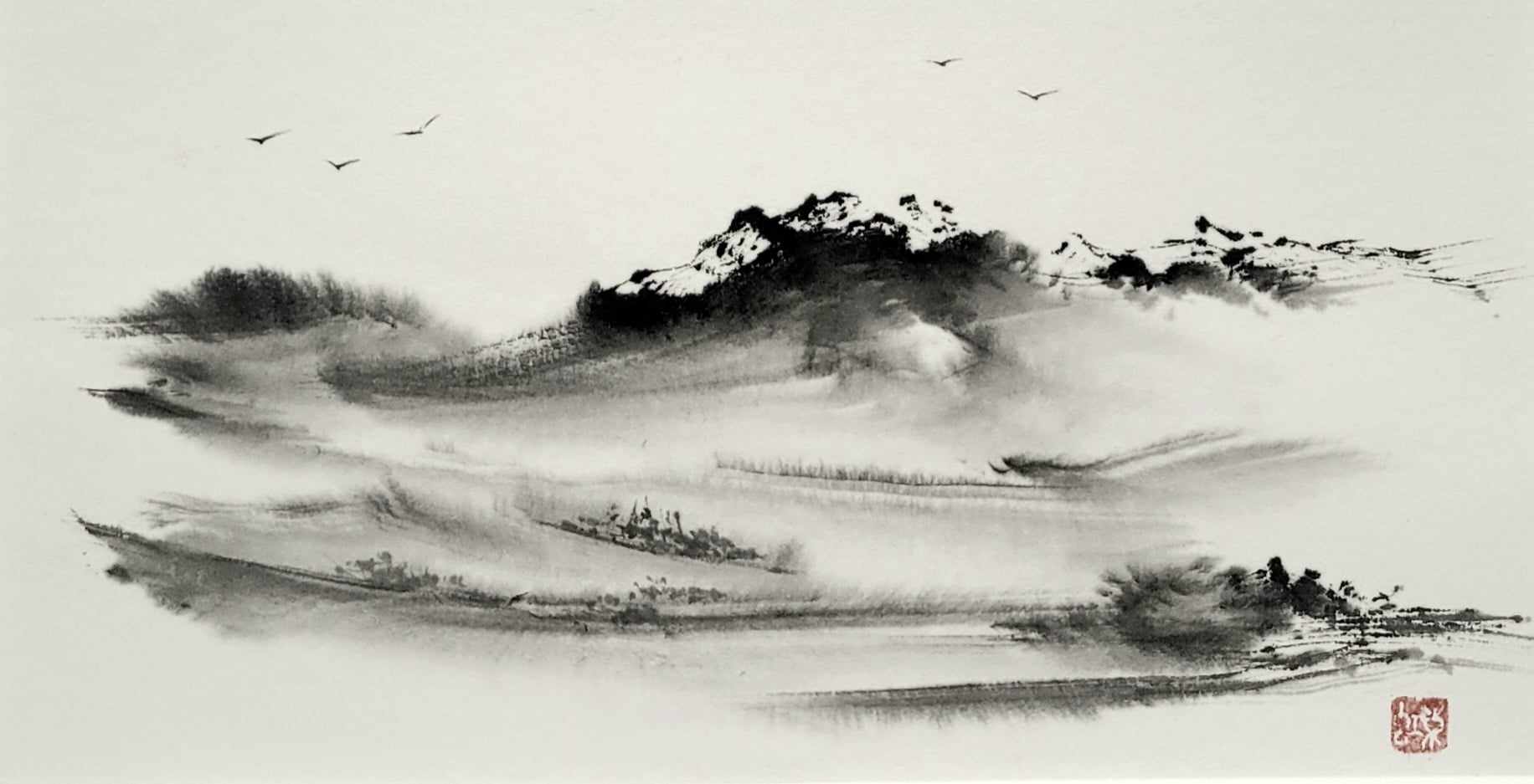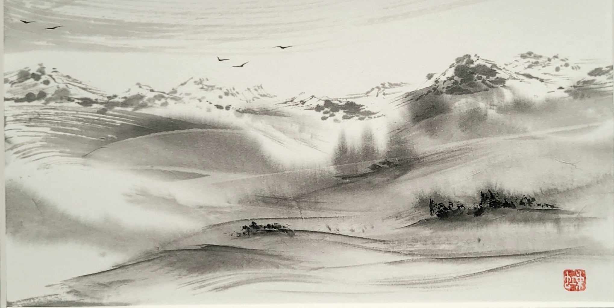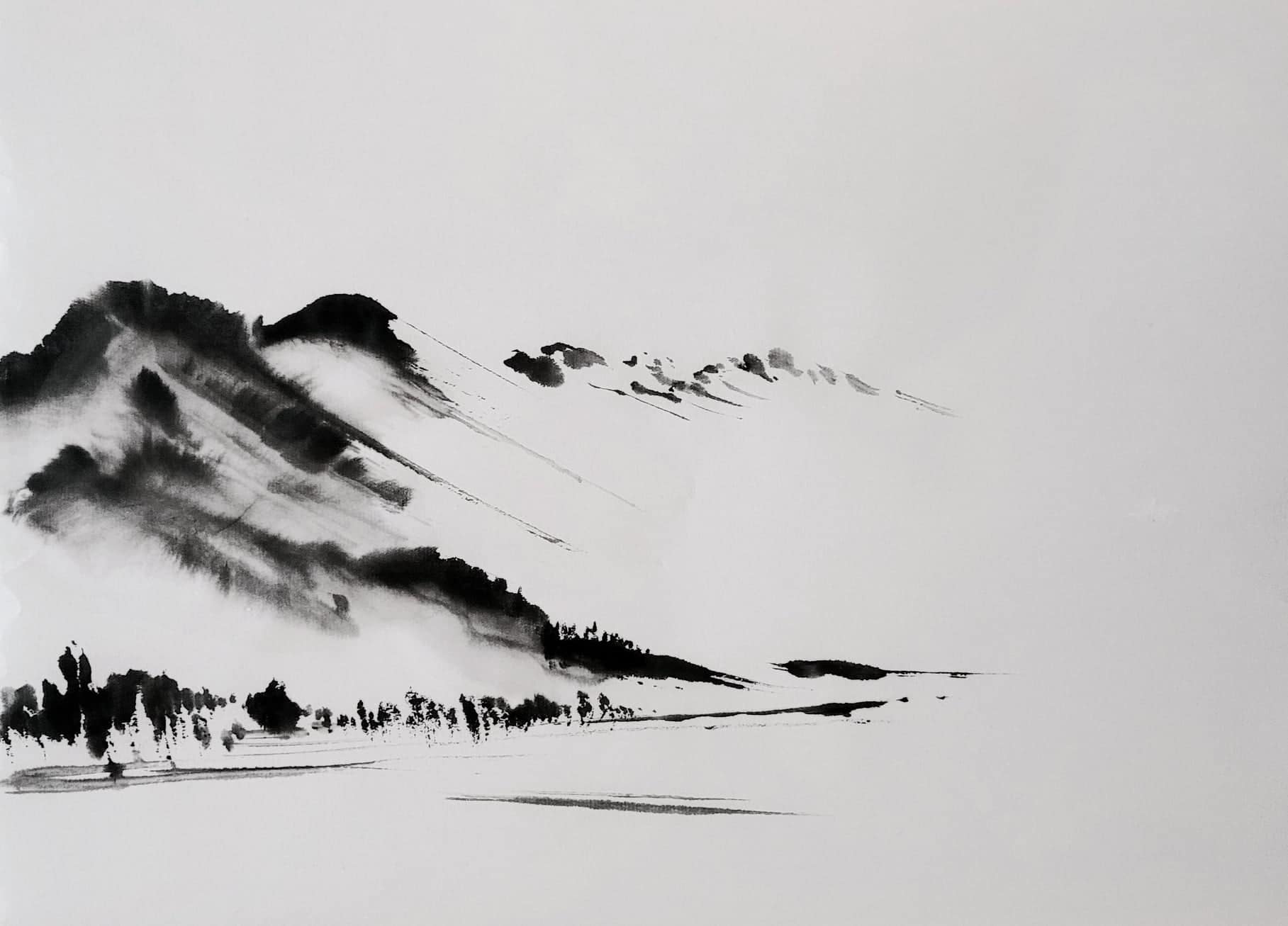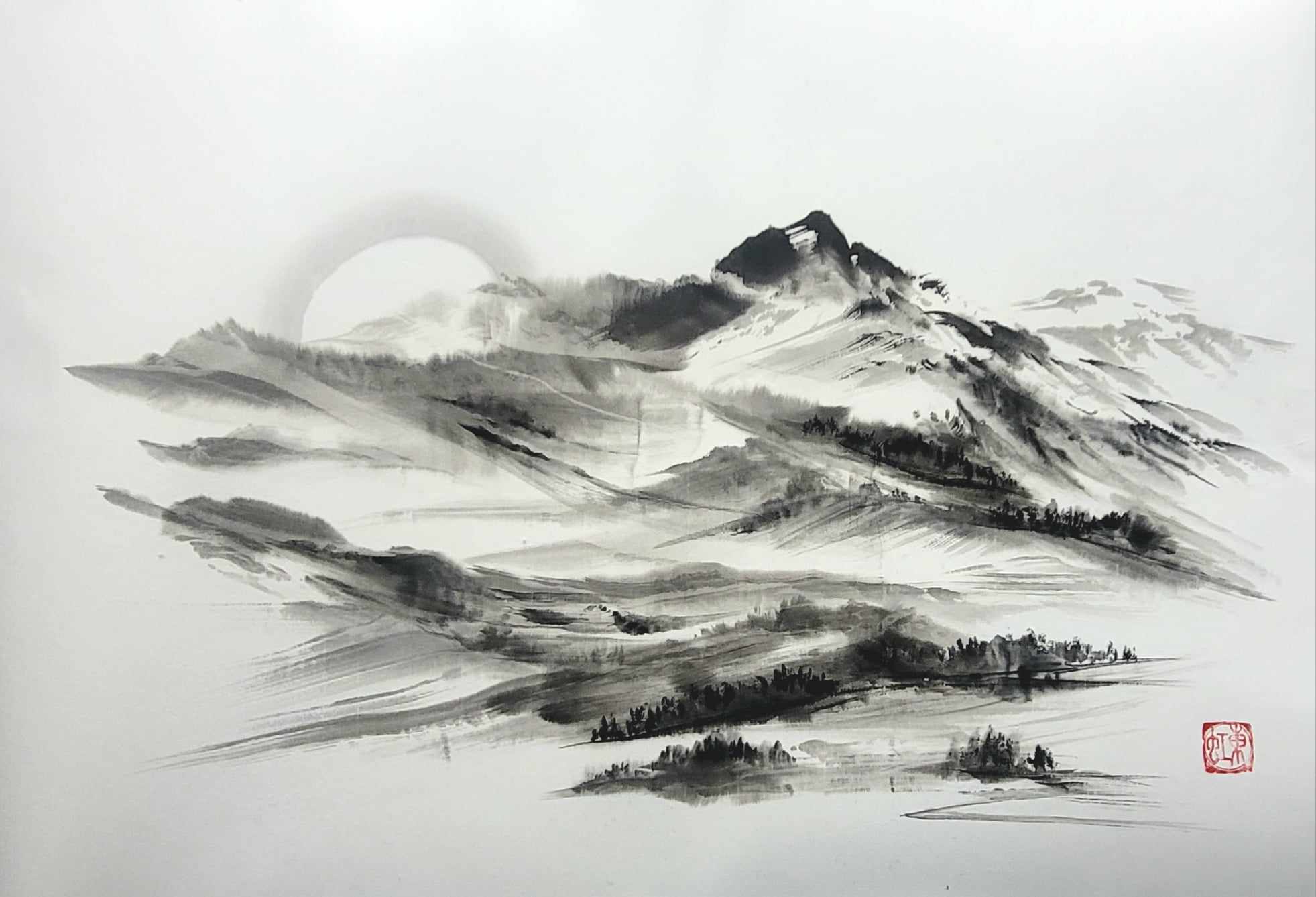 Meine Spezialität sind Landschaften. Die male ich sowohl in traditionellen japanischen Techniken als auch auf moderne und abstrakte Weise.