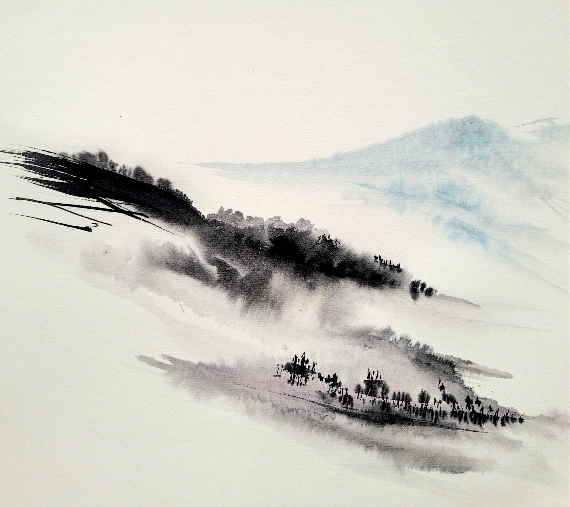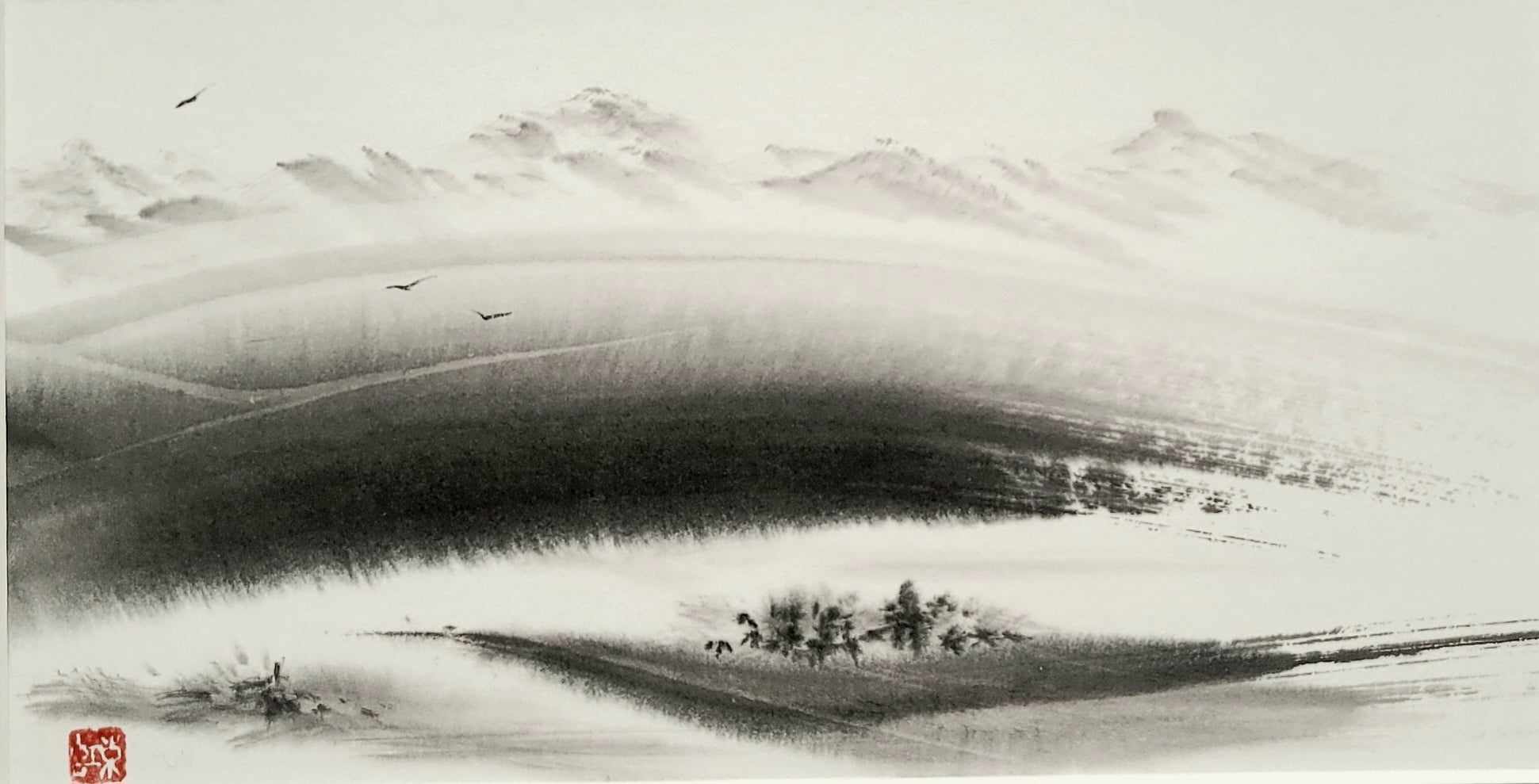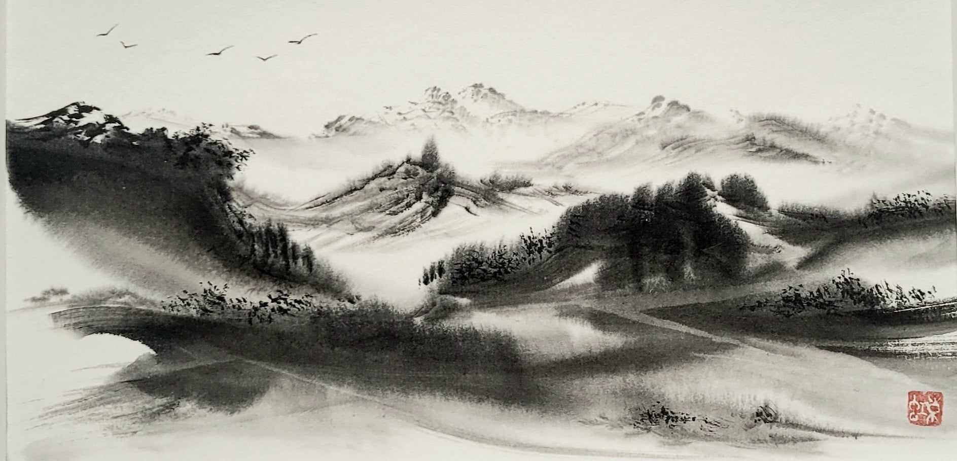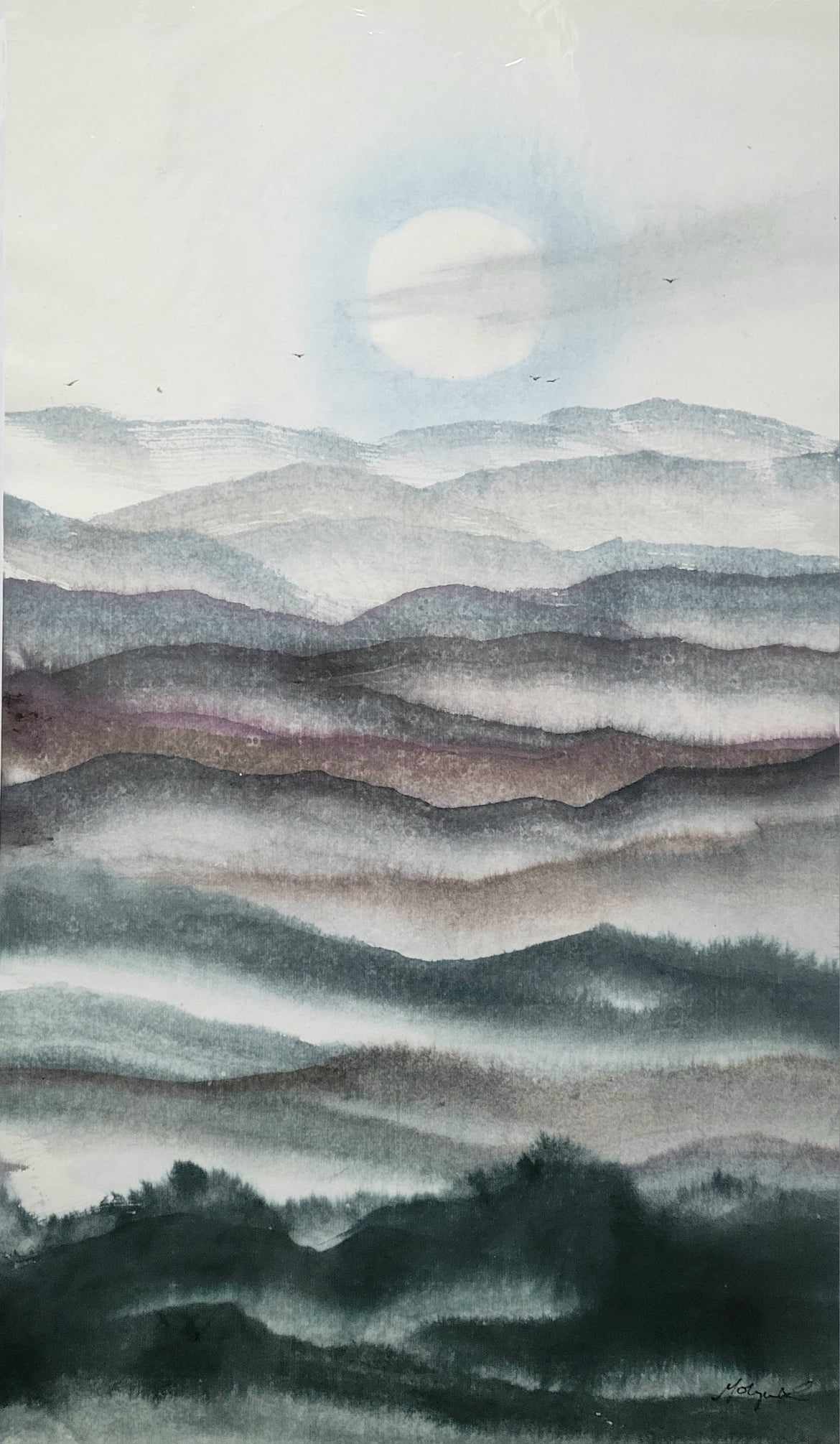 Meine Spezialität sind Landschaften. Die male ich sowohl in traditionellen japanischen Techniken als auch auf moderne und abstrakte Weise.